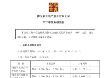 鳳凰網(wǎng)-陽光股份2020年度業(yè)績預(yù)告扭虧為盈 現(xiàn)任管理層順利“交卷”